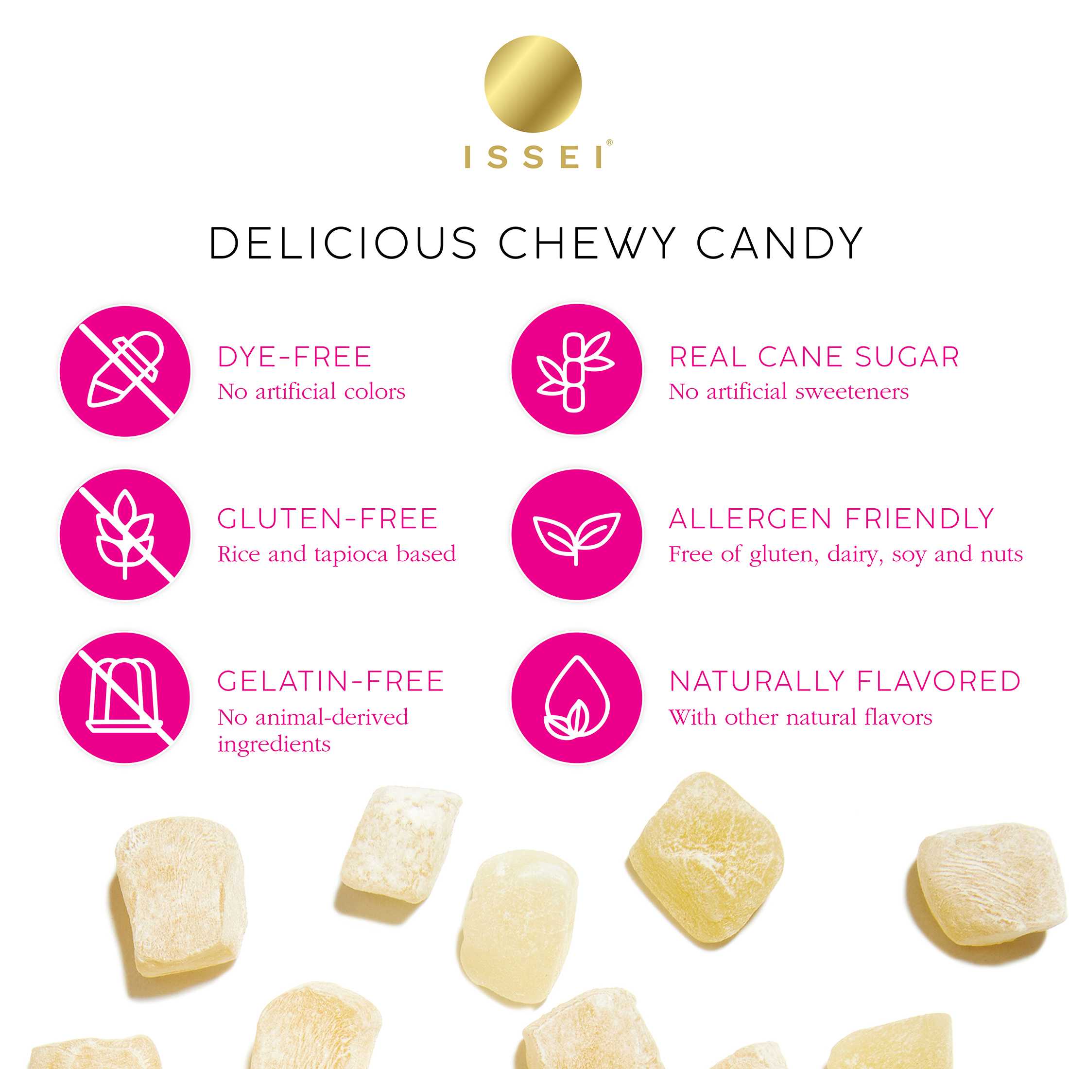 From very early on, Mika Shino followed her curiosity and passion in life, allowing her to learn, travel, grow and work in several capacities, as an artist, a dancer, a diplomat, and an entrepreneur. Everything she does shares a common element – to create something that can build bridges between people, celebrate diversity and make a positive impact in the world. In 2022, frustrated by the lack of clean-label options for her kids who love gummy candies, Mika became inspired by her Japanese heritage and began to bake mochi cakes in her kitchen. She baked them longer and added different ingredients, trying to emulate the chewy texture of traditional gummies by using a mixture of rice and tapioca flours, instead of gelatin. She cut them up into bite-sized pieces and called them ‘mochi gummies’. Her kids loved them, their friends loved them and Issei was born. Having never worked in the food industry and knowing no one in the food sector, Mika had no idea how to get on a store shelf but she knew that what she was making for her kids could help other mothers, parents and families in finding a cleaner, better-for-you snack. Mika created Issei, a woman and minority owned company to challenge the traditional ways in which we are used to consuming snacks which are laden with animal-derived ingredients and chemically enhanced additives; at the same time innovating to expand the scope of textures, flavors and ingredients inspired by her Asian heritage for a more inclusive food culture.